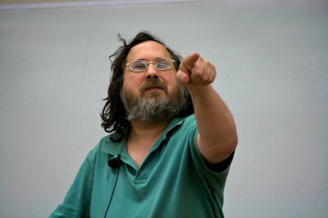 Qui de plus approprié pour cette première chronique Librologique, que Richard Stallman ? Né en 1953 — l’année même où paraissaient les premières Mythologies de Roland Barthes, auxquelles nous rendons ici hommage —, il est tout à la fois le premier auteur de logiciels tels qu’Emacs ou GCC, le fondateur du projet GNU, le co-auteur de la licence GPL et FDL, et par là l’instigateur du mouvement du logiciel Libre. Cependant, son apport a très tôt dépassé les frontières de l’informatique : on lui doit notamment la première ébauche de l’encyclopédie Libre Wikipédia, et sa page personnelle témoigne de la diversité de ses préoccupations : droits de l’Homme, libertés civiques, nouveautés scientifiques et patrimoine culturel...