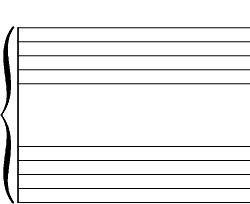 Nous allons faire une partition pour piano ; il te faut donc deux portées toutes propres, que nous allons réunir par une accolade, tout à gauche.