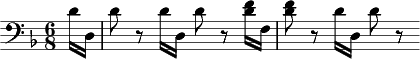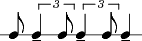 Sur le même modèle, on peut même obtenir un motif de "galop ternaire" avec simplement une levée (brève) et un appui (long) :